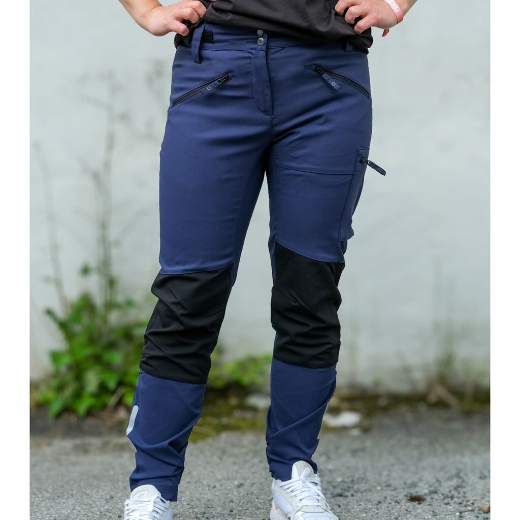 Buksen har fireveis stretch i hele stoffet som gjør at den passer godt til mange ulike kroppsformer. Det svarte stoffet på rumpe og på knær er ekstra slitesterkt og har mer stretch enn det fargete stoffet på resten av buksa.
