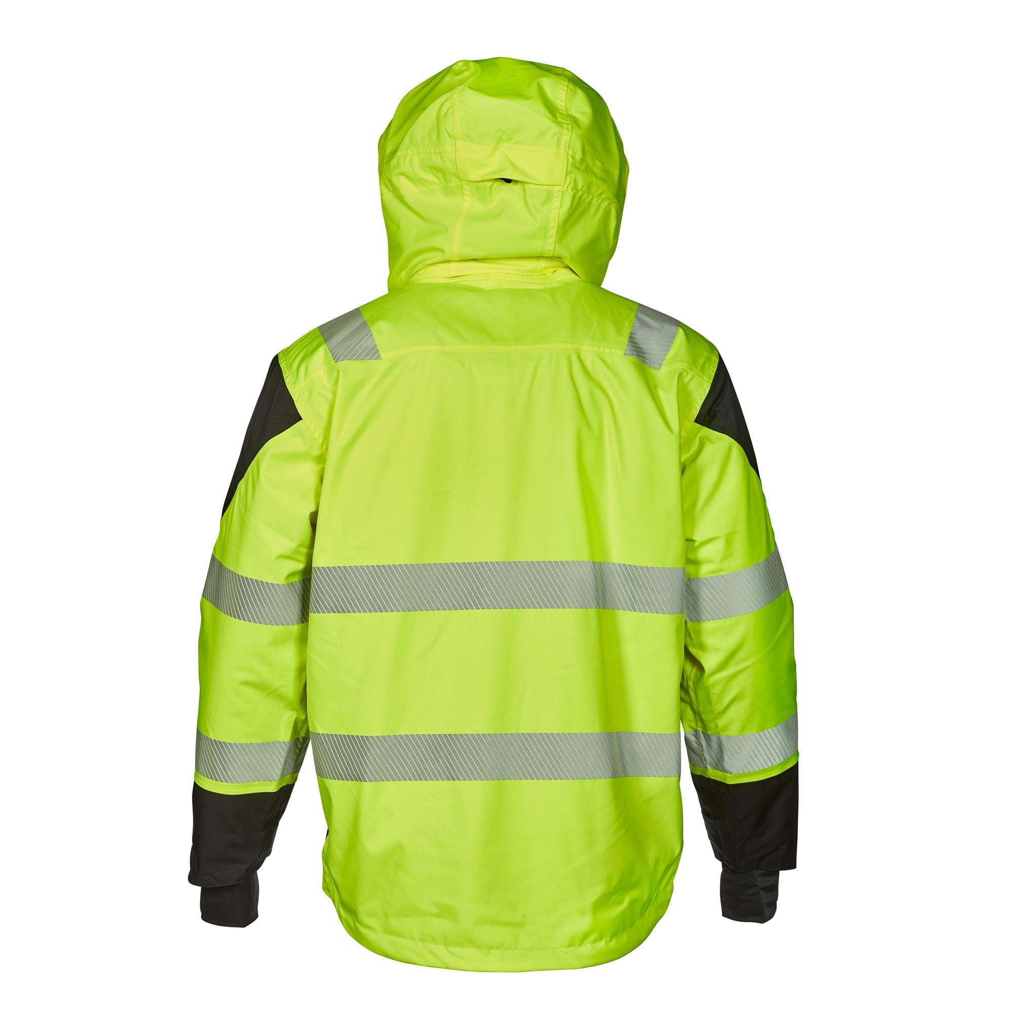 Vattert jakke med nedsenket rygg. Avtakbart innerfor (100 gr/m2) for bruk i flere sesonger. Rip-stop ytterstoff i 300D polyester stretch som er PU-laminert. Alle sømmer er tapet for å unngå vanngjennomtrengning. To framlommer og en brystlomme. Stormlomme bak klaff med plass til nettbrett. Segmenterte refleks. ID-kortlomme. Nylonmansjett med tommelhull i erme. Borrelåsjustering v/erme. ISO20471 kl. 3. EN343:2019 kl. 4,1, X.