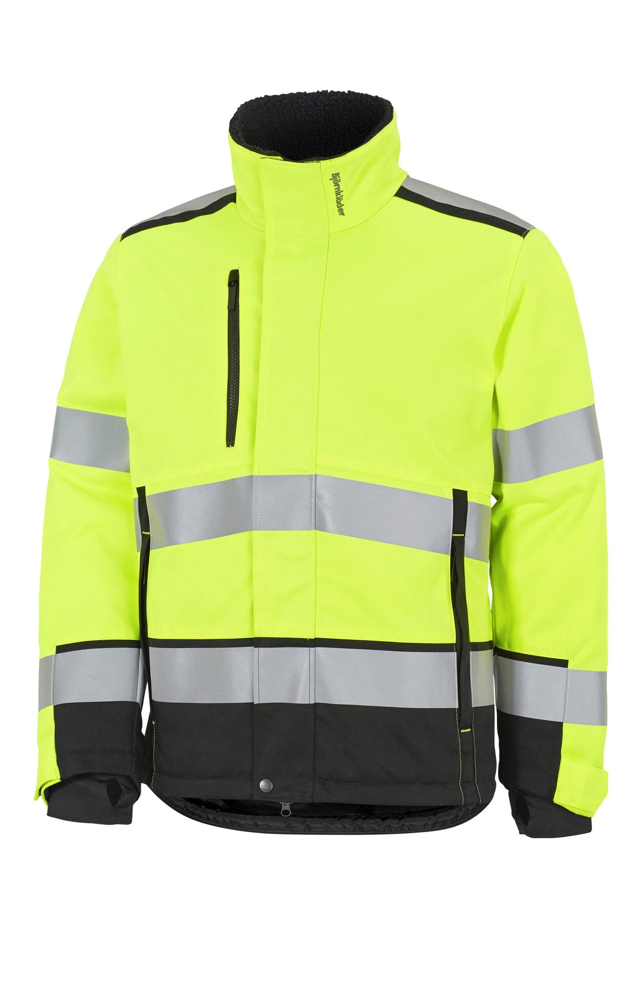 Varm vinterjakke med pilefôr. Smuss- og oljeavvisende yttermateriale med transferreflekser. Brystlomme på høyre side og napoleonslomme på venstre side. Fôret krage. Sidelommer med glidelåslukking. Innvendig lomme. Justering i livet. Ribb rundt ermer, samt justeringsmulighet.