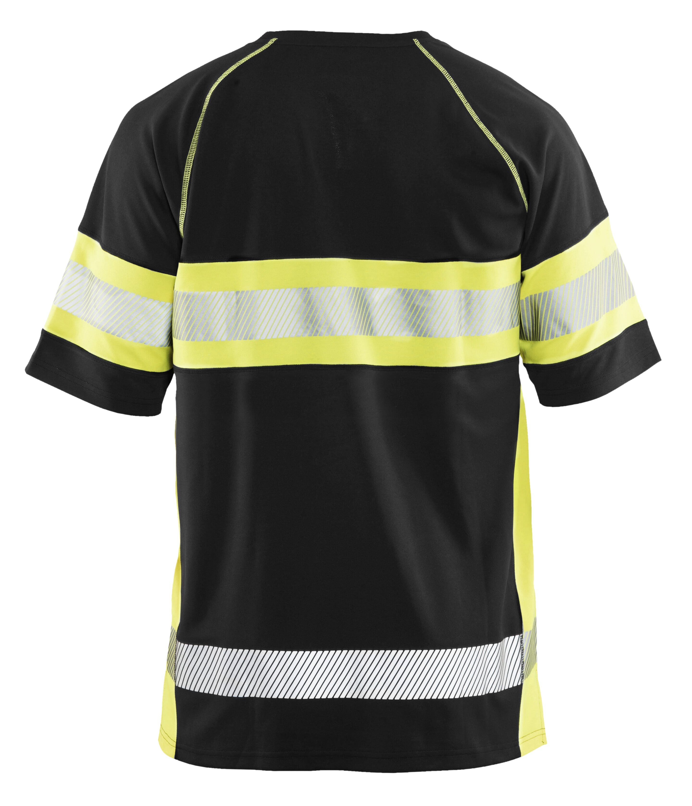 Myk og bekvem T-skjorte med kuttede transferreflekser for ekstra gode stretchegenskaper og luftgjennomslipp. Modellen er rundhalset og med forsterket halssøm. Materialet i pikètrøyen gir UV-beskyttelse og inneholder til og med bambuskull som motvirker vond lukt. Plagget oppfyller kravene til EN 13758-2 UPF 40+ og er sertifisert i henhold til EN ISO 20471 klasse 1, samsertifiseringsgruppe D.