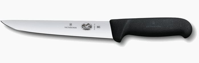 Rustfritt stål 18 cm Victorinox utbeningskniv med sort plasthåndtak. Bladet på kniven er rett med en liten konveks spiss som gjør det enkelt å nå sirkulære ben.