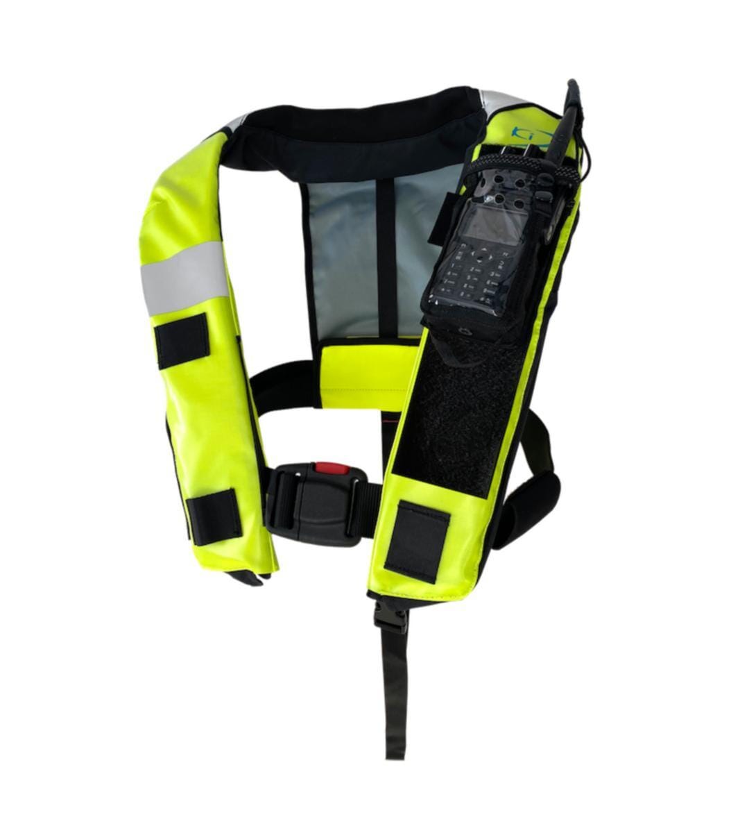 Ki-Vest er en slitesterk og pålitelig redningsvest som kan brukes over lengre tid uten ubehag. Vesten har automatisk oppblåsning i vann, myk nakke for komfort, tungt deksel med låsbart spenne og glidelås, samt Ki-Lock låsemekanisme for gassylinderen. Den inkluderer ID-kort med QR-kode, lomme for VHF-radio, knivholder, hengeloop og verktøylomme. Passer én størrelse for kroppshøyde 150–190+ cm og vekt 40–120+ kg.