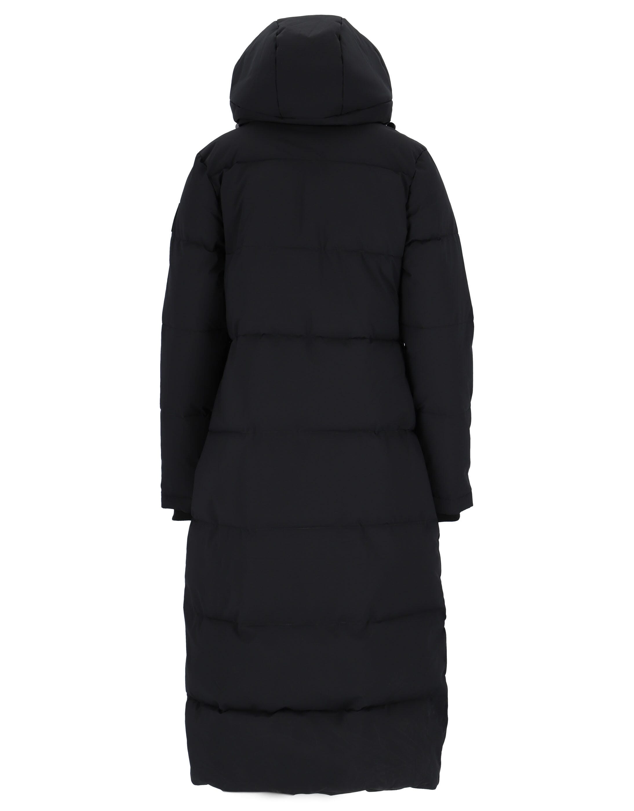 En lang parkas med fast hette i mykt og matt materiale. Den er fylt med et resirkulert og løst fyll som gir en veldig lett og varm vattering. Trykknappelukking på frontklaff med glidelås under samt glidelås på sidelommer med klaff. Mansjetter og innerkrage i myk rib. Den har stramming i livet og på hette for den beste passform. Jakken har god lengde så du holder varmen på kalden dager. Dette er en perfekt jakke å ha i garderoben.