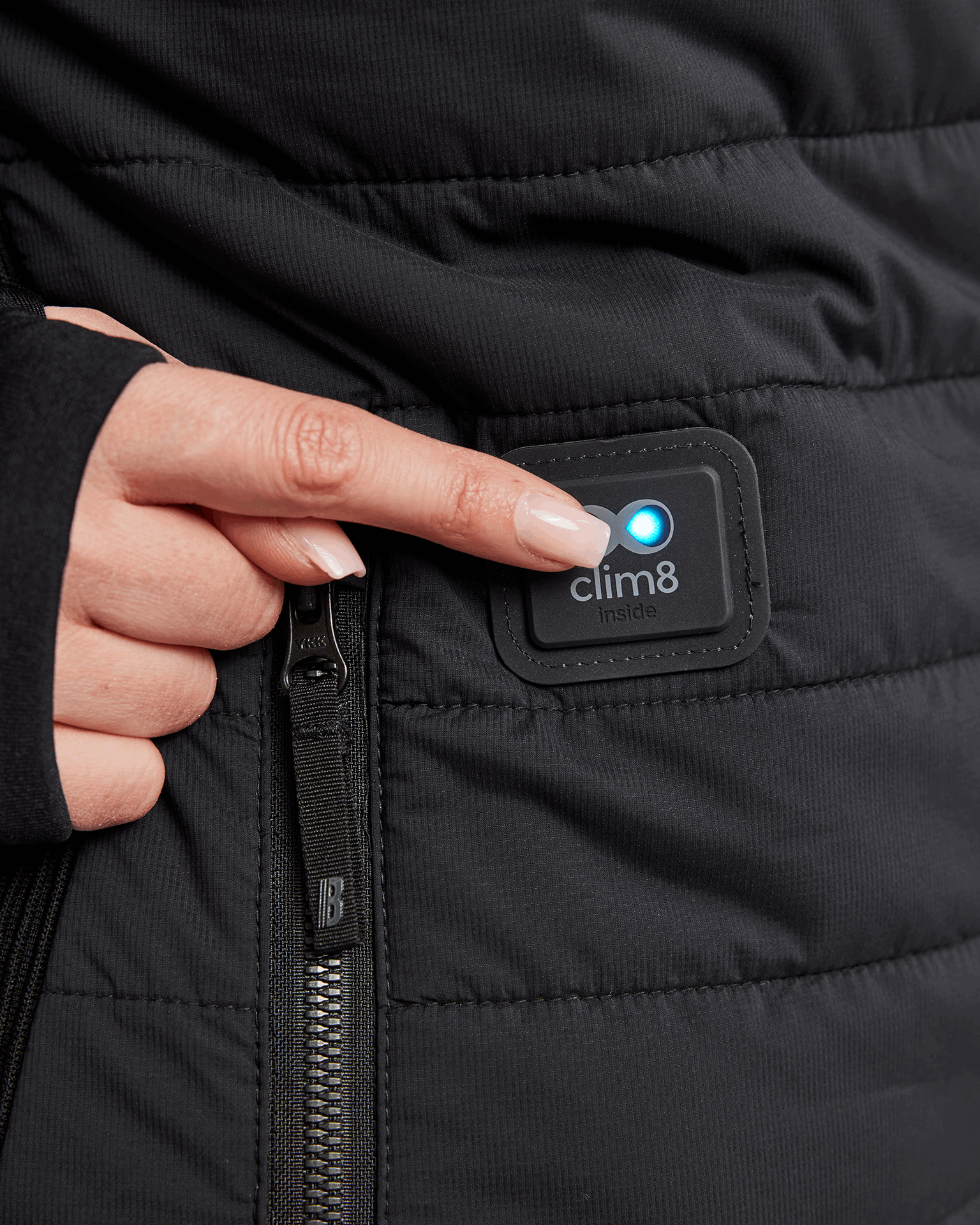 Vest med smart varmeteknologi fra Clim8®, som registrerer når kroppstemperaturen faller og varmer deg opp.
