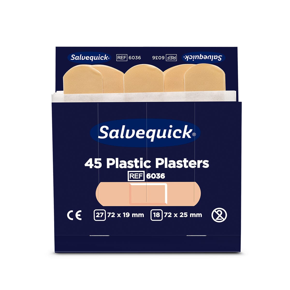 Salvequick plaster er et smidig plastplaster i høy kvalitet. Plasteret er allergitestet, lett å sette på og er fleksibelt i bruk. Hver eske består av 6 refiller.