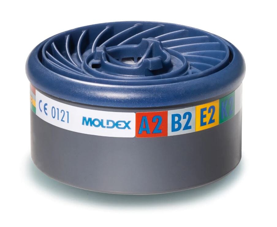 A2B2E2K2 EasyLock filter for Moldex 7000 halvmaske og 9000 helmaske. Leveres i par. Forpakning 4/24.