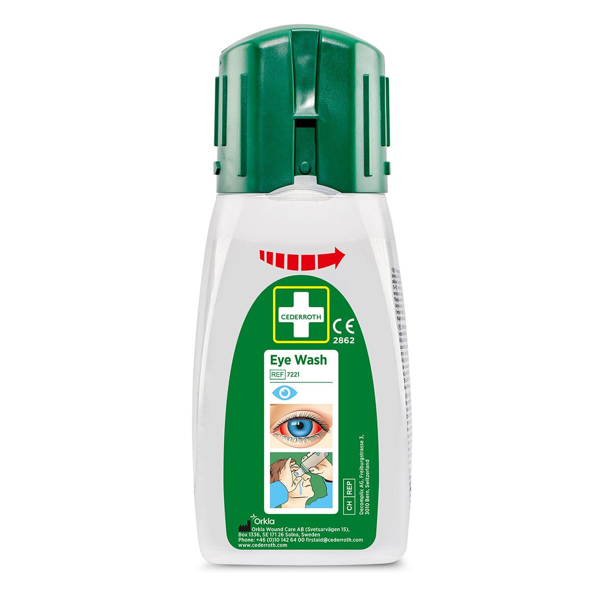 Din egen øyedusjflaske som du enkelt kan ta med deg i lommen eller i belteholder. På denne måte er den raskt tilgjengelig ved ulykkestilfeller. Lett håndterlig flaske med ergonomisk øyekopp og rikelig flyt av væske. Rask og enkel å åpne. Åpnes med ett enkelt håndgrep. Vri og flasken er åpen