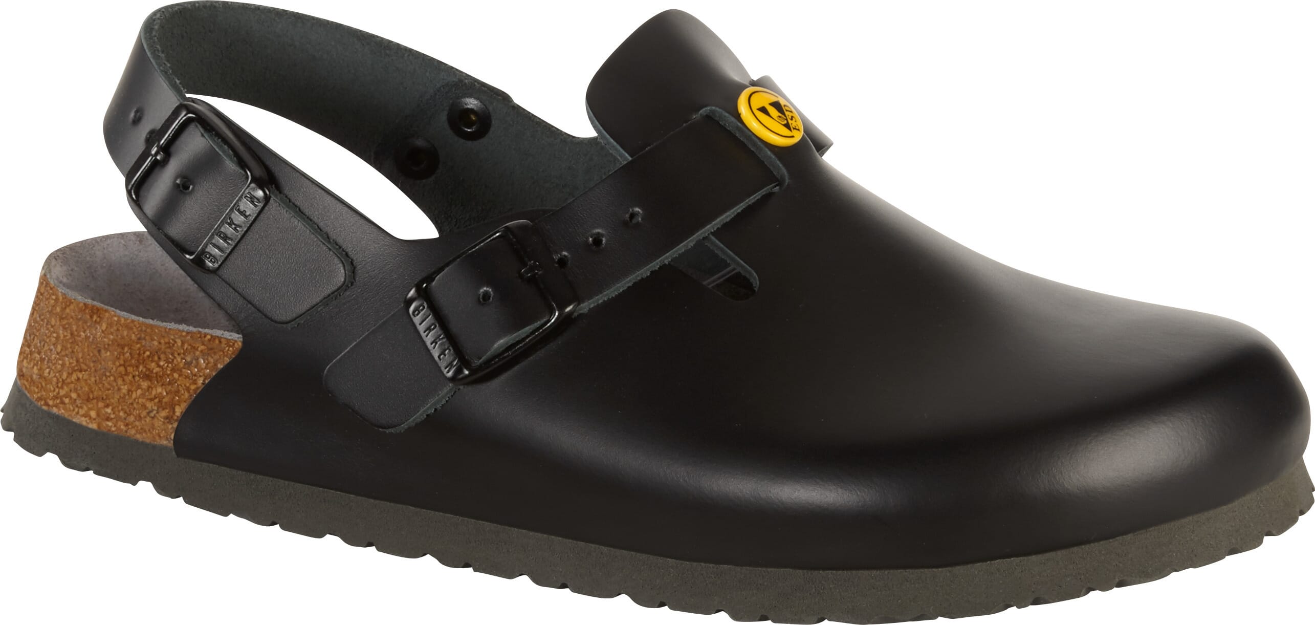 TOKIO ESD kombinerer klassisk design med pålitelig beskyttelse mot elektrostatiske utladninger. Den er spesielt utviklet for ESD-yrker og sørger for sikkerhet både for personer og utstyr i sensitive miljøer, som for eksempel halvlederindustrien. Alle BIRKENSTOCK ESD-modeller testes iht. standardene til DIN EN 61340. De oppfyller kravene til profesjonelle ESD-betingelser på 1,0 x 105 til 3,5 x 107 Ohm (motstand).