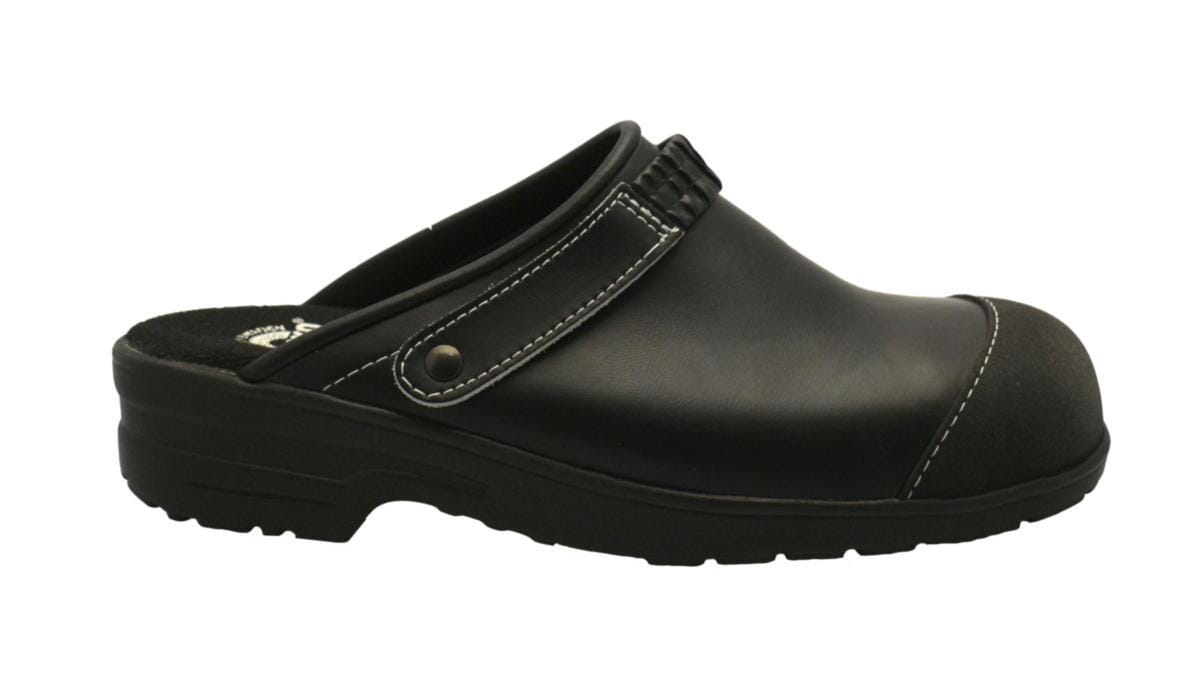 Myksko av meget høy kvalitet med vernetå i stål. Kombinert hæl og vristreim. Ekstra tåforsterker. Brasko bindsåle med fotseng og mykt vristfôr. Vekt pr. sko i str. 42: 480g. Farge: Sort. EN 20345. EN ISO 20345