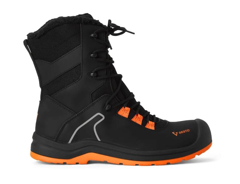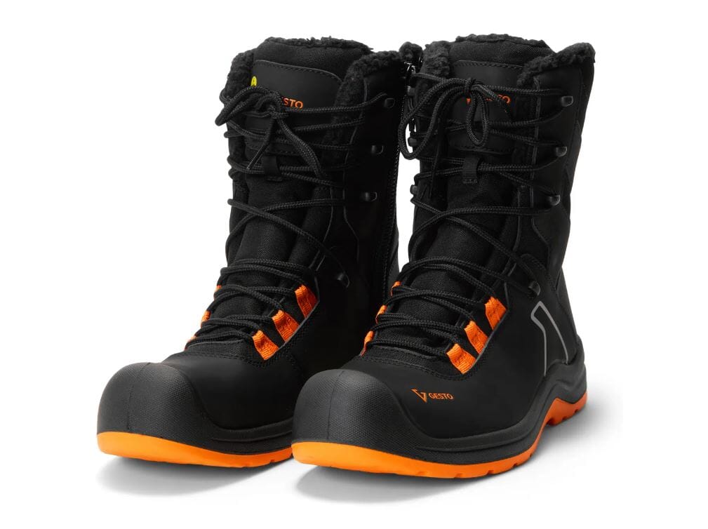 Fenja er en slitesterk vinterstøvel med normal lest i vannavvisende lær, laget for krevende arbeidsmiljøer. Skoen er foret med syntetisk ull og helt metallfri, med kompositt-tåhette og myk spikertrampbeskyttelse. PU-mellomsåle gir god demping, og nitrilgummi-yttersålen er slitesterk og sklisikker. Oljebestandig, antistatisk og ESD-godkjent. Skolisse lengde 190 cm.